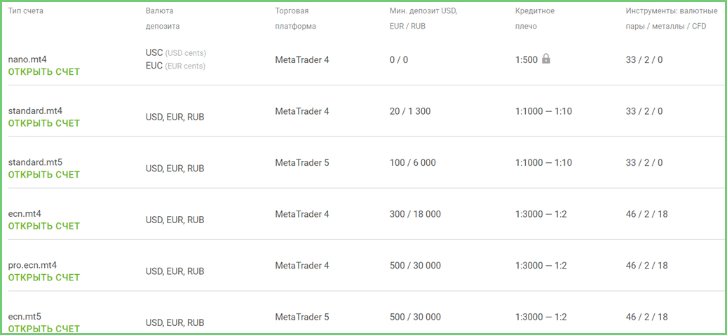 Однако для Цент-счетов существует ограничение в виде наибольшего объема депозита, так как они разработаны специально для новичков. Трейдерам с достаточным опытом все же рекомендуется открывать Инста-счета, где максимальный депозит не ограничивается, а наибольшая доступная сделка — 10 000 лотов.